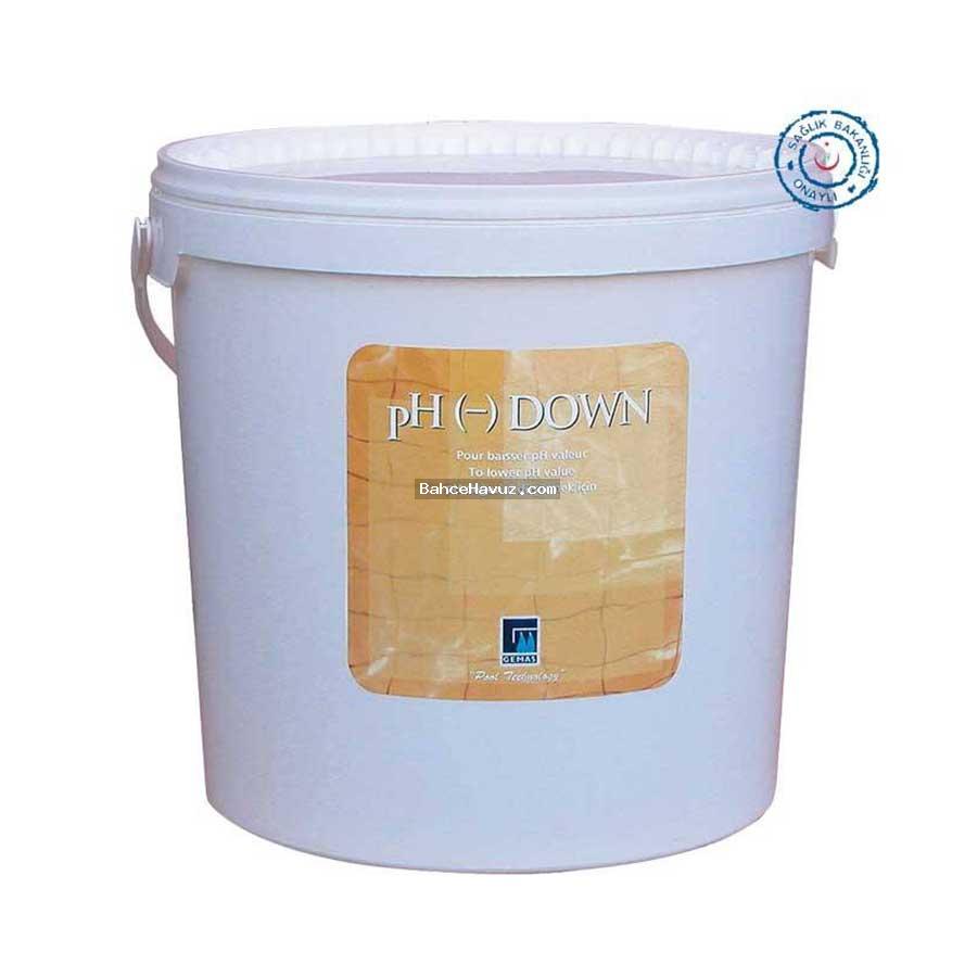 Gemaş toz ph düşürücü kimyasal, havuzun çeşitli noktalarından havuz suyuna ilave edilir. Kullanım miktarı : Havuz suyunun ph değerini 0.1 değer