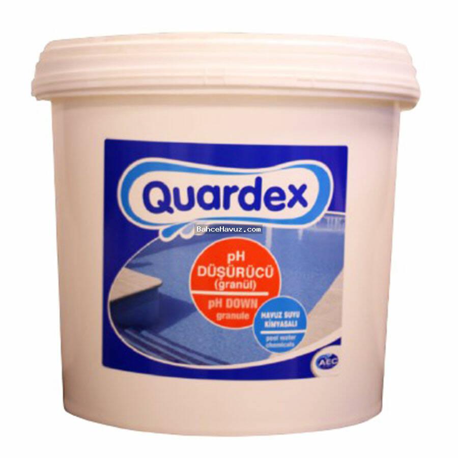 Quardex Granül Ph Düşürücü kimyasal, havuzun çeşitli noktalarından havuz suyuna ilave edilir. Kullanım miktarı : Havuz suyunun ph değerini 0.1 de